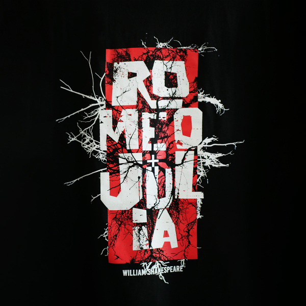 Koszulka bawełniana z nadrukiem nawiązującym do oprawy graficznej spektaklu „Romeo i Julia”. Klasyczny T-shirt wykonany z wysokiej jakości bawełny (100 %). Fason damski i męski, dostępne rozmiary: S, M, L, XL.